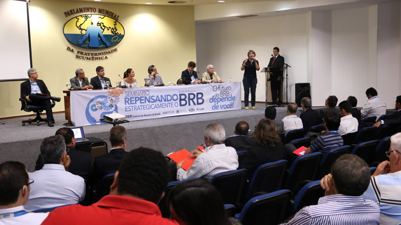 Realizado na quarta-feira (28), no auditório da Legião da Boa Vontade (LBV), o seminário foi organizado pelo Sindicato dos Bancários de Brasília, Fetec-CUT/CN, BRB Clube, AFA-BRB e AABR. Os debates contaram com a participação de funcionários do banco, convidados e palestrantes que abordaram os temas BRB e o Sistema Financeiro Nacional, o Papel do BRB no Desenvolvimento Econômico do Distrito Federal e do Centro-Oeste, BRB e a Tecnologia da Informação e O futuro do BRB: uma visão dos funcionários e aposentados.