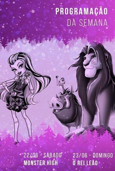 A partir das 10h, tem espetáculo teatral para a criançada. As atrações serão Monster High, no sábado, e O Rei Leão, no domingo.