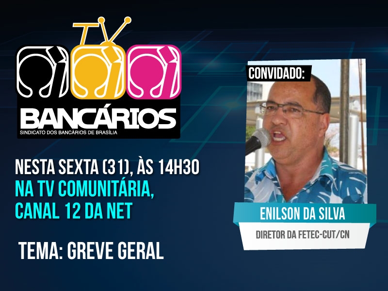 O TV Bancários na TV Comunitária desta sexta (5) tem novamente como tema a Greve Geral do dia 28 de abril. Para fazer um balanço da paralisação, o programa recebe Enilson da Silva, diretor da Federação dos Trabalhadores em Empresas de Crédito do Centro Norte (Fetec-CUT/CN) e empregado da Caixa.
