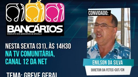 O TV Bancários na TV Comunitária desta sexta (5) tem novamente como tema a Greve Geral do dia 28 de abril. Para fazer um balanço da paralisação, o programa recebe Enilson da Silva, diretor da Federação dos Trabalhadores em Empresas de Crédito do Centro Norte (Fetec-CUT/CN) e empregado da Caixa.