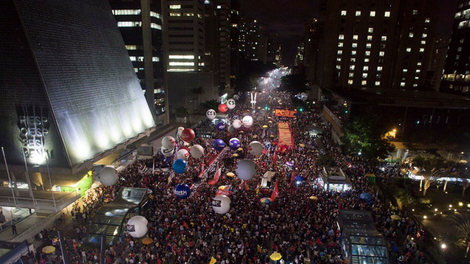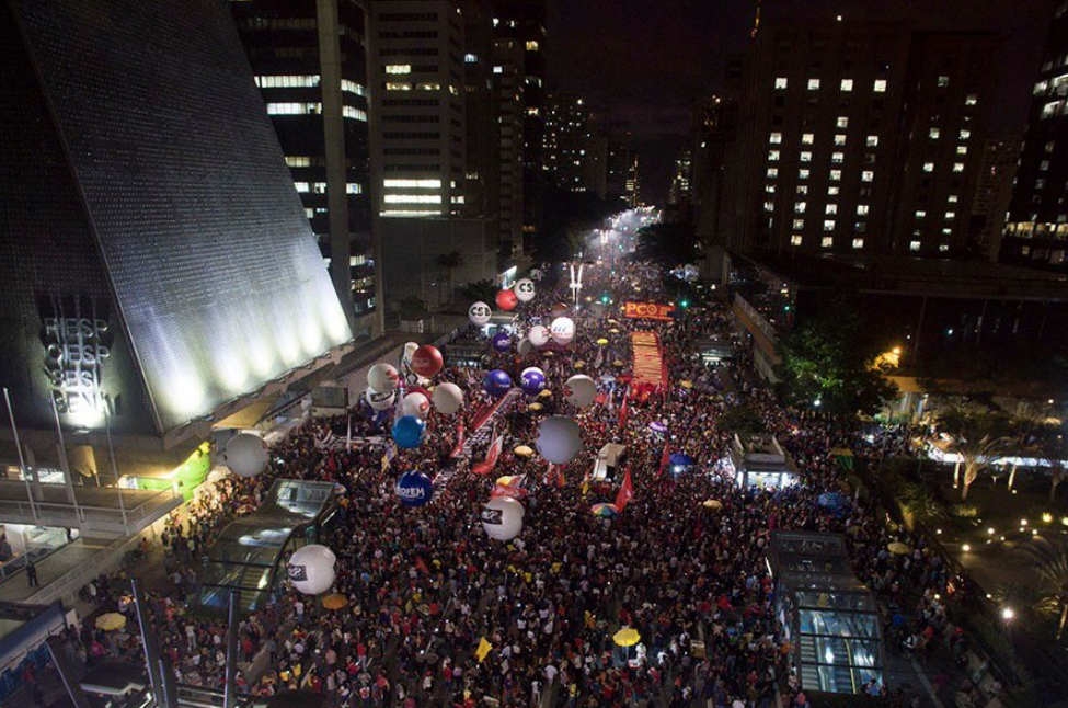 Na Avenida Paulista, em frente à sede da Federação das Indústrias do Estado de São Paulo (Fiesp), 50 mil pessoas se reuniram contra a reforma da Previdência. O ato teve apoio da CUT e de diversas centrais sindicais, além do sindicato dos professores de São Paulo, saúde e metalúrgicos, e das frentes Brasil Popular e Povo Sem Medo.