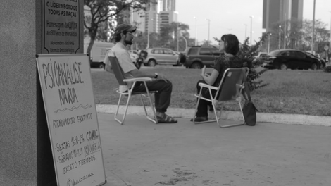 Todas as sextas-feiras, no finalzinho da tarde, a Praça Zumbi dos Palmares, em frente ao Conic, ganha um aspecto diferente. O espaço que por vezes passa despercebido em meio à correria do dia a dia, se converte em uma clínica a céu aberto. Ali, por onde passam milhares de pessoas diariamente, um grupo de psicanalistas de diferentes percursos realiza atendimento gratuito, das 16h30 às 19h.