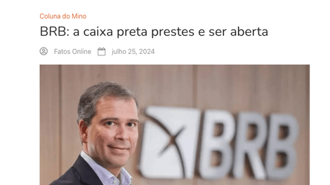 Matérias questionam a gestão do Banco Regional de Brasília (BRB), sob a liderança do presidente Paulo Henrique Costa. Recentes reportagens levantam sérias preocupações sobre a administração do banco, que merece uma investigação aprofundada e respostas claras à sociedade.