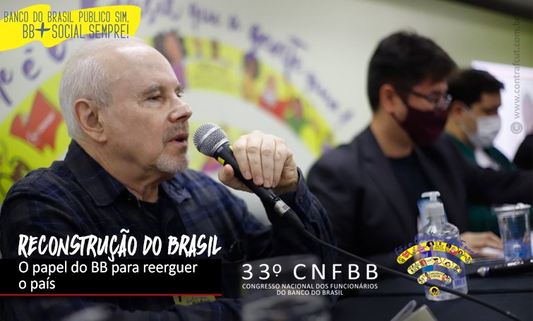 O ex-ministro da Fazenda nos governos Lula e Dilma, Guido Mantega, fez uma apresentação sobre a destruição do país e dos bancos públicos como estratégia de governo neoliberal e traçou os objetivos que devem ser seguidos para “reconstruir o Brasil que a gente quer”, na mesa que debateu “O papel do Banco do Brasil na reconstrução do Brasil que a gente quer”, realizada nesta quinta-feira (9) durante 33º Congresso Nacional dos Funcionários do Banco do Brasil.