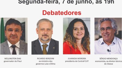 Também participam da discussão o governador do Piauí, Wellington Dias (PT-PI); o bancário e ex-ministro Ricardo Berzoini; e o economista e ex-diretor-técnico do Dieese Sergio Mendonça.