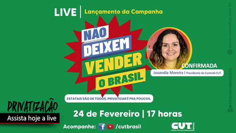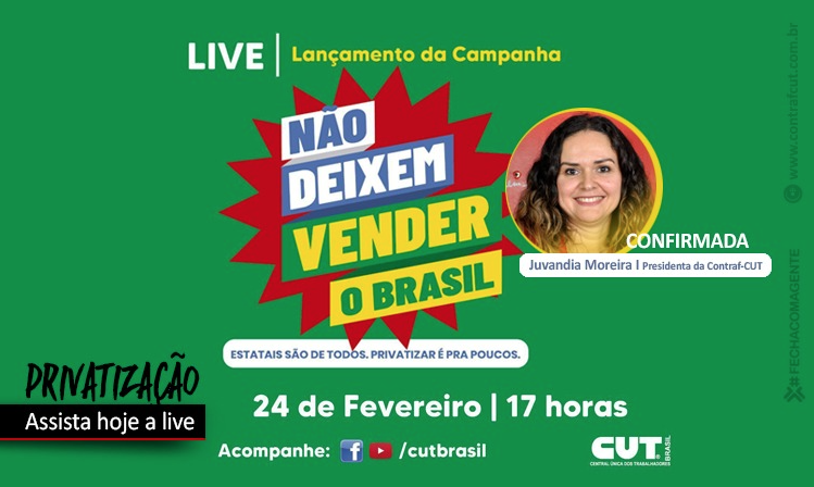A transmissão ao vivo marca o lançamento da campanha “Não deixem vender o Brasil”, promovida pela CUT e entidades filiadas em defesa das empresas estatais brasileiras. O governo Bolsonaro e o ministro/banqueiro Paulo Guedes querem acelerar a privatização do patrimônio do povo brasileiro.