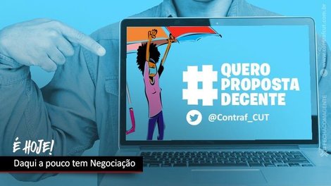 O Comando Nacional da categoria marcou para hoje às 13h um tuitaço para pressionar os bancos a atenderem às reivindicações. Participe com a hashtag #QueroPropostaDecente. Após as negociações, haverá plenárias e assembleias organizativas em todos os sindicatos. Participe das mobilizações porque estamos em um momento decisivo! Ao final da reunião de negociação de hoje, você poderá saber as novidades pelo site. Acompanhe as negociações pelas nossas redes sociais.