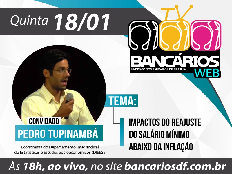 O TV Bancários Web desta quinta (18) tem como tema as consequências do reajuste do salário mínimo abaixo da inflação. Pedro Tupinambá, economista do Departamento Intersindical de Estatística e Estudos Socioeconômicos (DIEESE) é quem vai tratar do assunto.