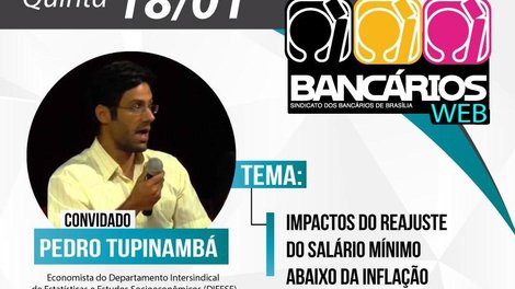 O TV Bancários Web desta quinta (18) tem como tema as consequências do reajuste do salário mínimo abaixo da inflação. Pedro Tupinambá, economista do Departamento Intersindical de Estatística e Estudos Socioeconômicos (DIEESE) é quem vai tratar do assunto.