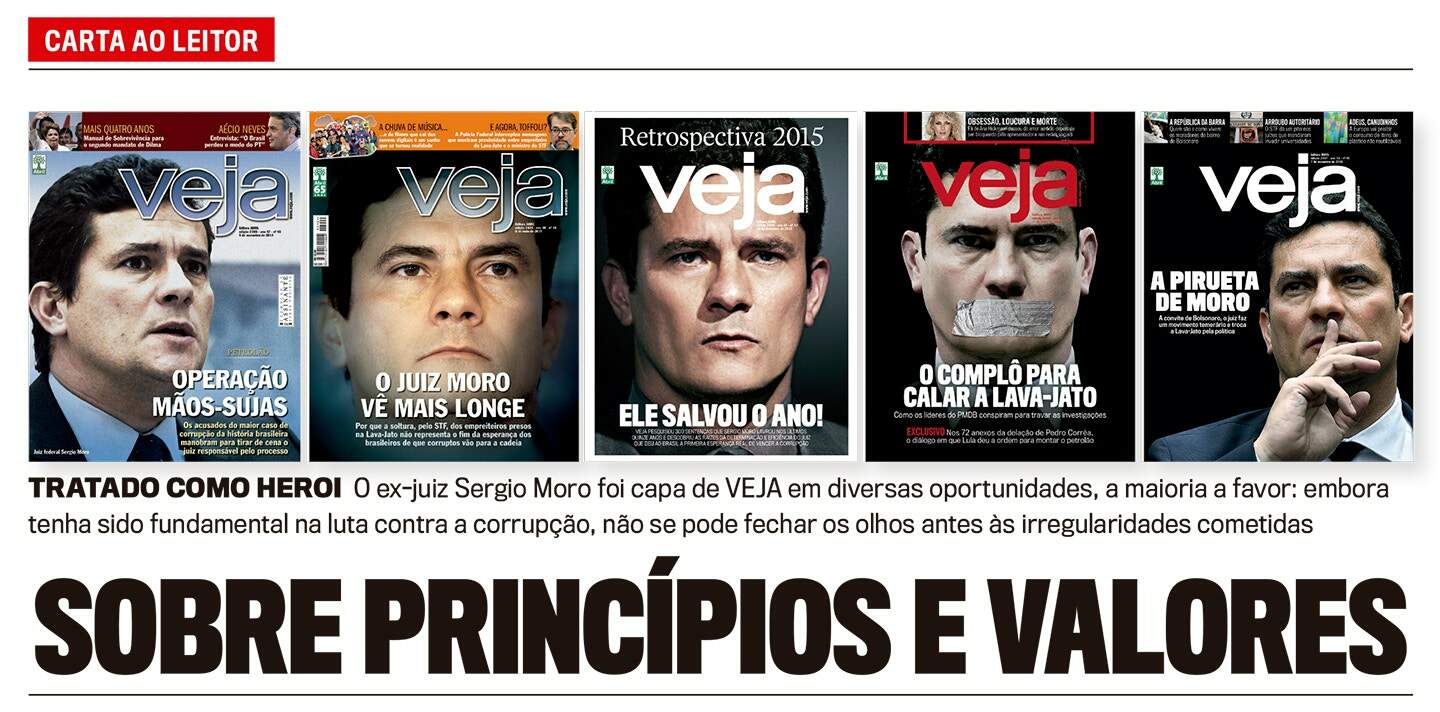 Além da reportagem, a “Carta ao Leitor” explica não só o processo jornalístico empregado pela Veja para autenticar o material, mas também as razões pelas quais a revista – que, como admite no editorial, tratou Moro como um herói nacional várias vezes em suas capas – agora reconhece que a conduta do juiz era bastante problemática e que a condução dos processos da Lava Jato não se deu de acordo com a lei.