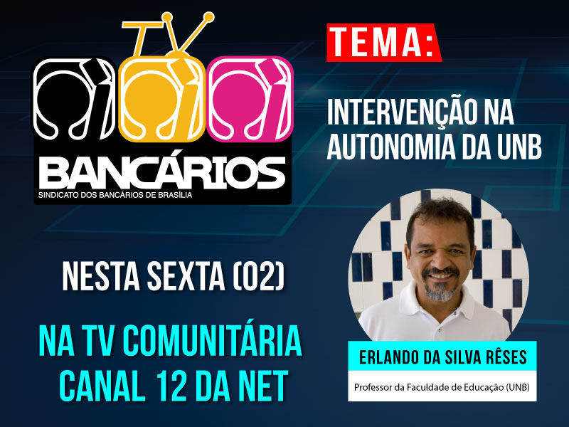 O TV Bancários na TV Comunitária desta semana vai tratar de um assunto que gerou polêmica: a intervenção do governo Temer na autonomia da Universidade de Brasília (UnB). Como convidado, o programa recebe o professor da Faculdade de Educação da instituição Erlando da Silva Rêses.