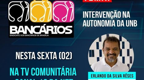 O TV Bancários na TV Comunitária desta semana vai tratar de um assunto que gerou polêmica: a intervenção do governo Temer na autonomia da Universidade de Brasília (UnB). Como convidado, o programa recebe o professor da Faculdade de Educação da instituição Erlando da Silva Rêses.