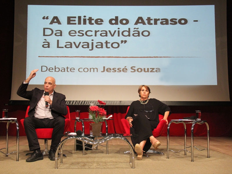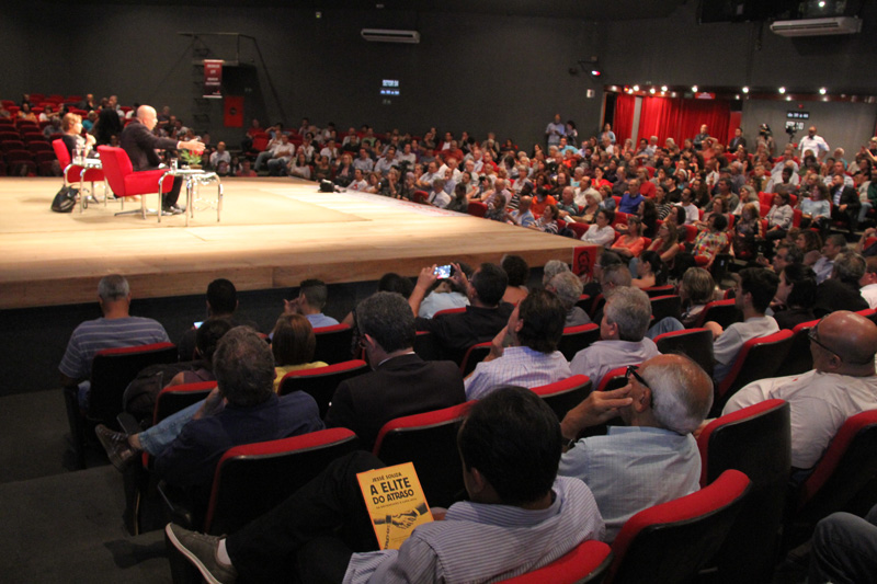 O Teatro dos Bancários lotou na noite desta segunda-feira (12) para o debate com o sociólogo Jessé Souza, autor do livro A elite do atraso – Da escravidão à Lava Jato. A obra supre uma lacuna jamais ocupada por pensadores de esquerda na explicação do Brasil desde o princípio.