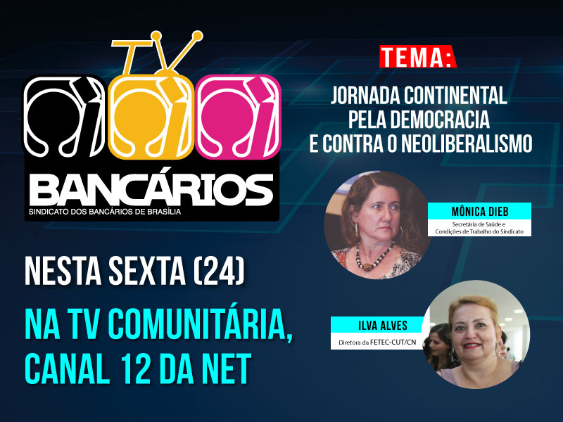 Jornada Continental pela Democracia e Contra o Neoliberalismo é tema do TV Bancários na TV Comunitária dessa semana. Como convidadas o programa recebe as dirigentes sindicais Ilva Alves e Mônica Dieb que participaram do movimento em Montevidéu, no Uruguai.