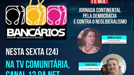 Jornada Continental pela Democracia e Contra o Neoliberalismo é tema do TV Bancários na TV Comunitária dessa semana. Como convidadas o programa recebe as dirigentes sindicais Ilva Alves e Mônica Dieb que participaram do movimento em Montevidéu, no Uruguai.