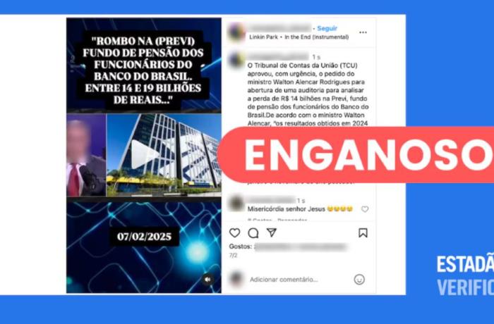 Em nota sobre a fake news, a Previ pontuou que desde que o Tribunal de Contas da União (TCU) anunciou uma auditoria, no início de fevereiro, para analisar um período específico, de janeiro a novembro de 2024, quando o Plano 1 teve déficit, vem lidando com uma série de informações divulgadas na mídia e redes sociais.