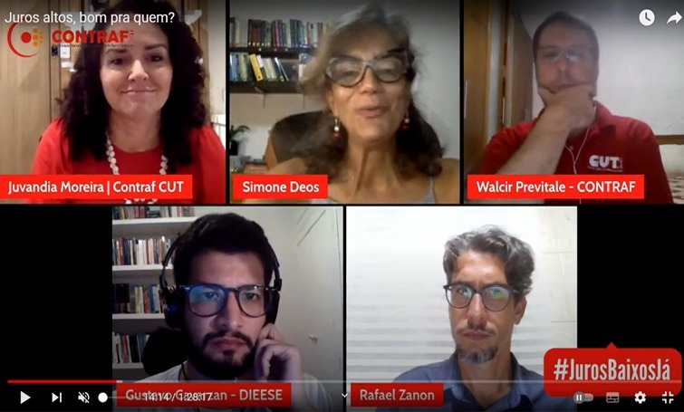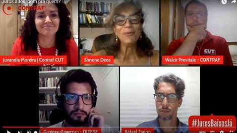 O debate, transmitido pelos canais da Confederação Nacional dos Trabalhadores do Ramo Financeiro (Contraf-CUT) no YouTube e Facebook, contou com os comentários e a medição da presidenta da entidade, Juvandia Moreira, além da participação de Walcir Previtale e Rafael Zanon, respectivamente, secretários de Assuntos Socioeconômicos e de Formação da Contraf-CUT.