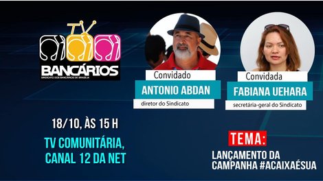 Para falar sobre o assunto, o TV Bancários na TV Comunitária exibe nesta sexta (18), às 15h, uma entrevista com os diretores do Sindicato e empregados da Caixa Fabiana Uehara e Antonio Abdan. Eles vão falar sobre a importância da campanha para a manutenção do banco como instituição 100% pública e a serviço do Brasil e dos brasileiros, principalmente os que mais precisam do Estado.