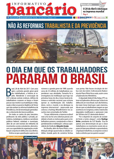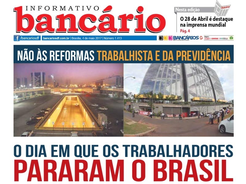 A grande Greve Geral do dia 28 de Abril é o destaque. Também apresenta análise dos prejuízos para os trabalhadores das reformas trabalhista e previdenciária. Clique para baixar o PDF