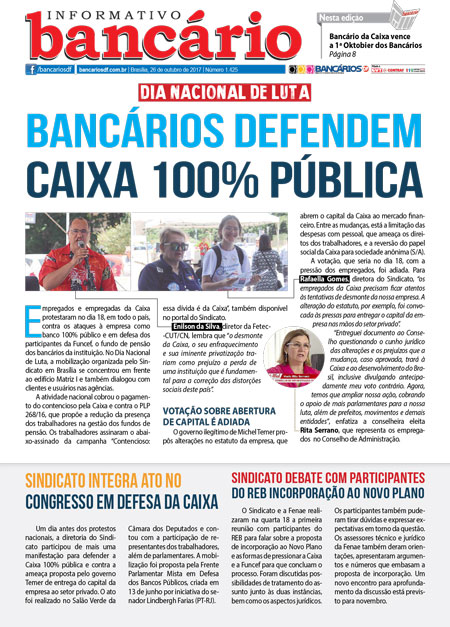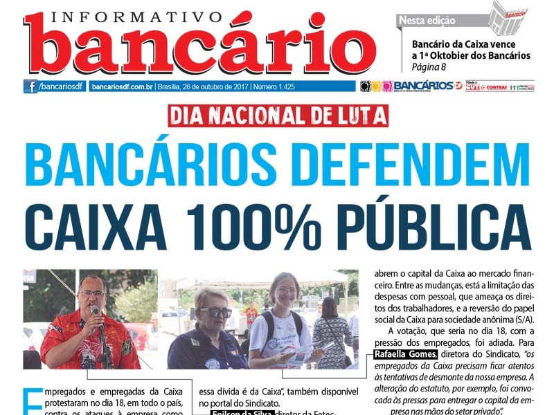 DIA NACIONAL DE LUTA: Bancários defendem caixa 100% pública. Clique aqui para baixar o PDF