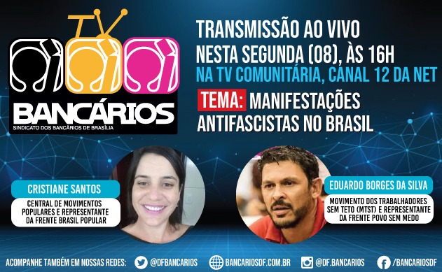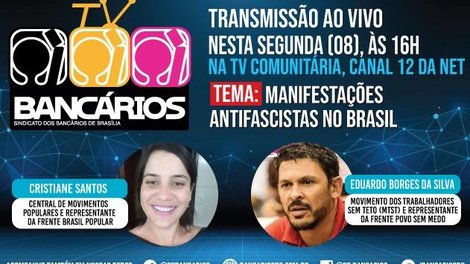 Edição especial do programa TV Bancários debate nesta segunda-feira (8) as manifestações antifascistas que ocorrem no Brasil, em defesa da democracia e dos direitos dos trabalhadores e do povo, a reboque das manifestações que acontecem ao redor do mundo após a eclosão dos protestos antirracistas nos Estados Unidos com a morte do cidadão negro George Floyd, asfixiado por um policial branco.