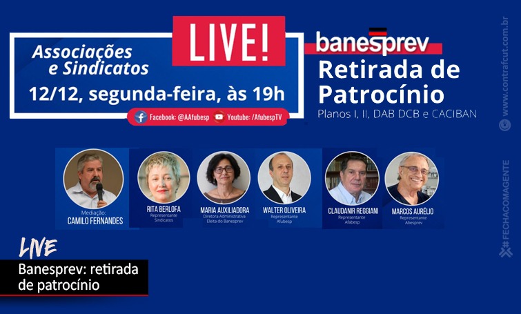 A transmissão ao vivo pelas redes sociais das entidades contará com a presença de Walter Oliveira, representando a Afubesp; de Maria Auxiliadora, diretora administrativa eleita do Banesprev; de Rita Berlofa, representando os sindicatos; de Claudanir Reggiani, pela Afabesp; e de Marcos Aurélio, representando a Abesprev. O presidente da Afubesp, Camilo Fernandes, mediará o debate.