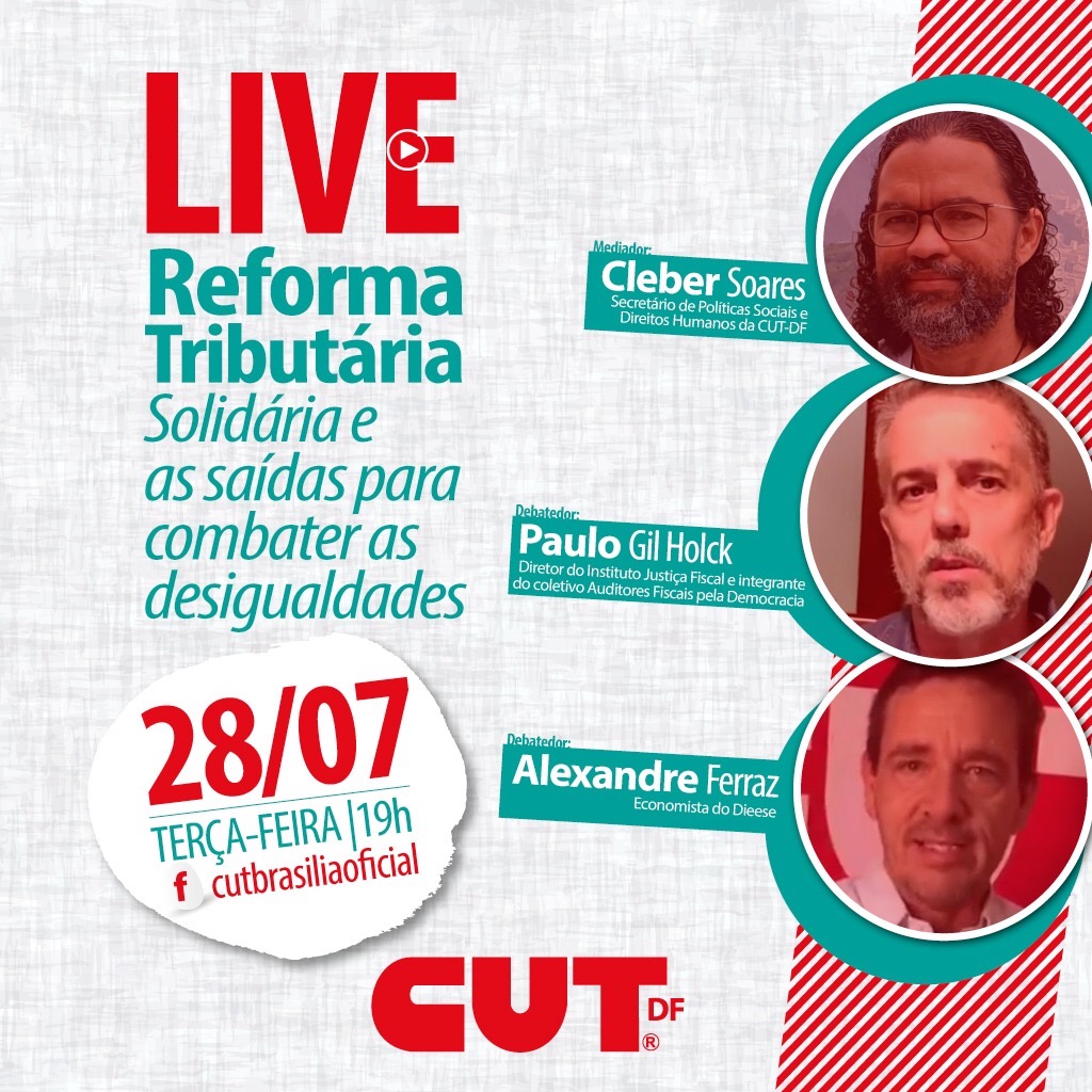 Nesta terça-feira (28), a CUT-DF realizará live para discutir a necessidade da aprovação de uma reforma tributária solidária, que torne mais justa a cobrança de impostos no país. Intitulada “Reforma Tributária Solidária e as saídas para combater as desigualdades sociais”, a atividade será transmitida ao vivo pelo Facebook da Central, a partir das 19h.