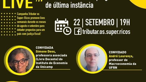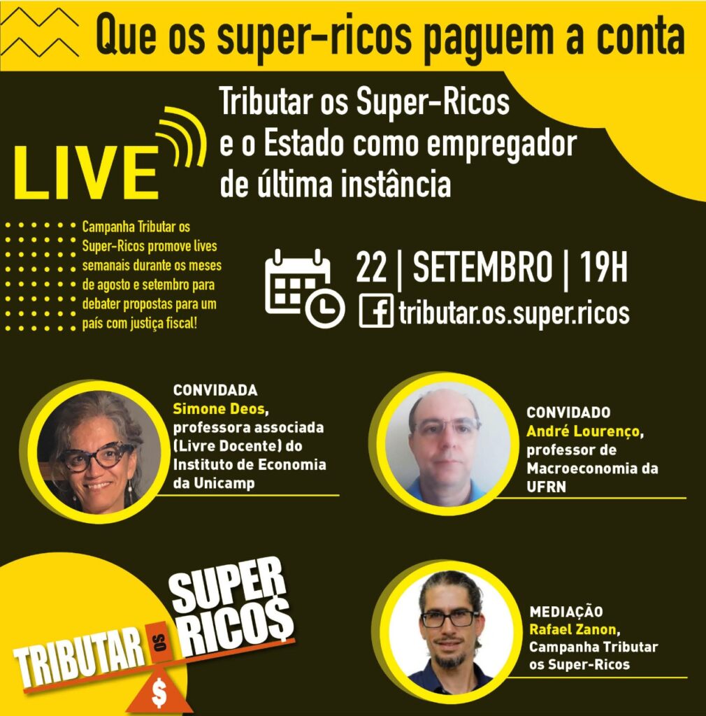 Na próxima quinta-feira (22), às 19h, acontece mais uma live da campanha Tributar os Super-Ricos.