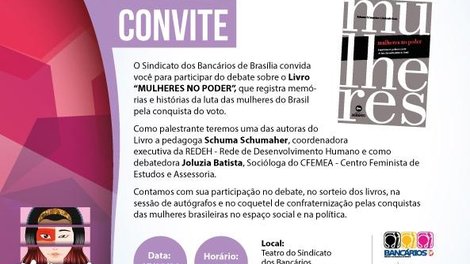 Memórias e histórias da luta das mulheres do Brasil pela conquista do voto fazem parte do livro “Mulheres no Poder: trajetória na política a partir da luta das sufragistas”, de autoria das pedagogas Antonia Ceva e Schuma Schumaher, sobre o qual haverá debate no dia 17 de fevereiro, às 19h, no Sindicato dos Bancários de Brasília (314/315 Sul – Bloco A).