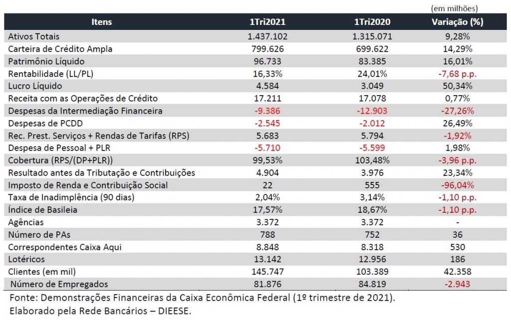 O relatório completo do balanço está disponível no site da Caixa. Quem preferir pode ver abaixo a tabela resumo, ou a íntegra da análise, ambas elaboradas pelo Departamento Intersindical de Estatística e Estudos Socioeconômicos (Dieese).