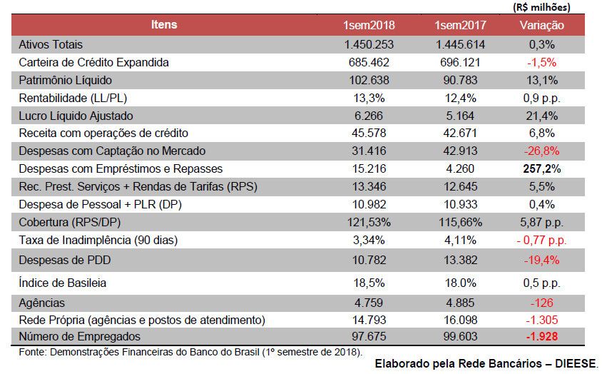 Segundo análise feita pelo Departamento Intersindical de Estatística e Estudos Socioeconômicos (Dieese), com base no relatório do banco, o resultado foi impactado principalmente pelo aumento das rendas de tarifas e redução da despesa com Provisão para Créditos de Liquidação Duvidosa (PDD) no período. “Após o golpe, o Banco do Brasil passou a atuar como um banco privado, que pensa mais no lucro do que em seus funcionários e clientes. Cobra tarifas altas pelos serviços, que muitas vezes é realizado pelo próprio cliente, e promoveu uma grande redução em seu quadro de pessoal, prejudicando o atendimento e sobrecarregando ainda mais os funcionários que permaneceram no banco”, disse o coordenador da Comissão de Empresa dos Funcionários do Banco do Brasil (CEBB), Wagner Nascimento.