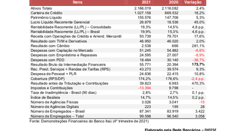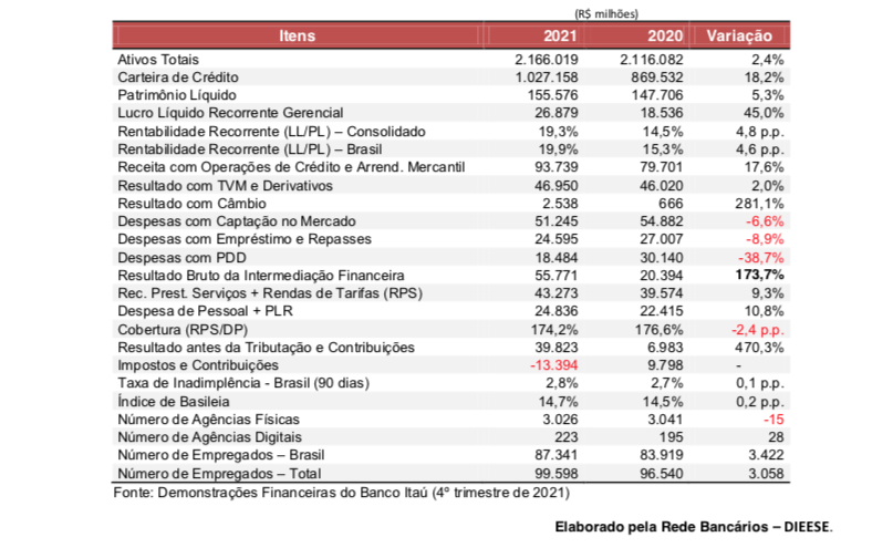 O Itaú Unibanco obteve Lucro Líquido Recorrente Gerencial, que exclui efeitos extraordinários, de R$ 26,879 bilhões em 2021, alta de 45% em relação ao ano de 2020. No 4º trimestre, o Lucro Líquido Recorrente Gerencial foi de R$ 7,159 bilhões, alta de 5,6% em relação ao trimestre anterior (R$ 6,779 bilhões). No país, o Retorno Recorrente consolidado sobre o Patrimônio Líquido médio anualizado (ROE) foi de 19,9% no ano, com alta de 4,6 pontos percentuais em doze meses.