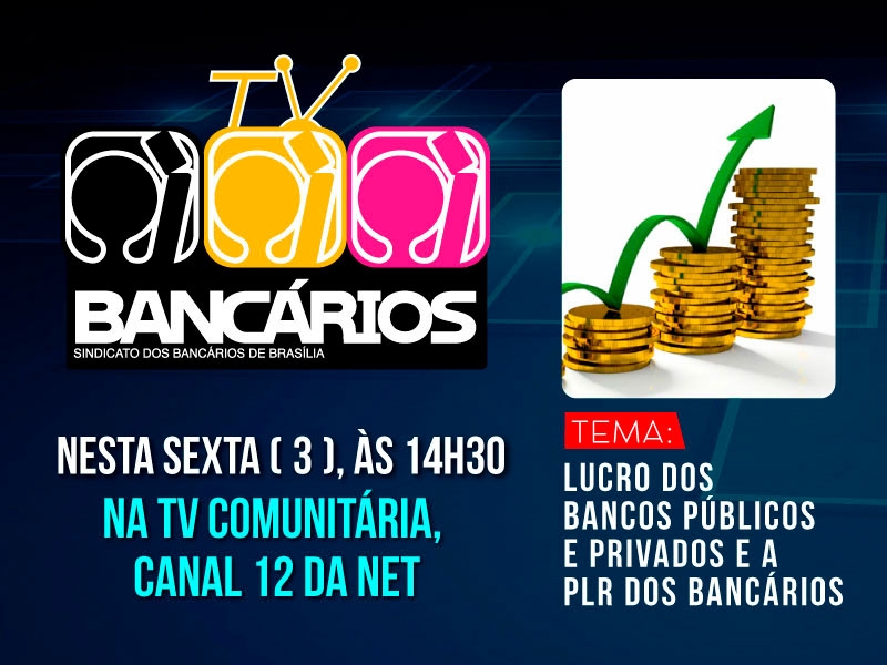 O exorbitante lucro dos bancos públicos e privados e a PLR dos bancários serão debatidos no programa TV Bancários, exibido pela TV comunitária desta sexta (3), a partir das 14h30.