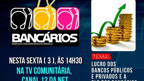 O exorbitante lucro dos bancos públicos e privados e a PLR dos bancários serão debatidos no programa TV Bancários, exibido pela TV comunitária desta sexta (3), a partir das 14h30.