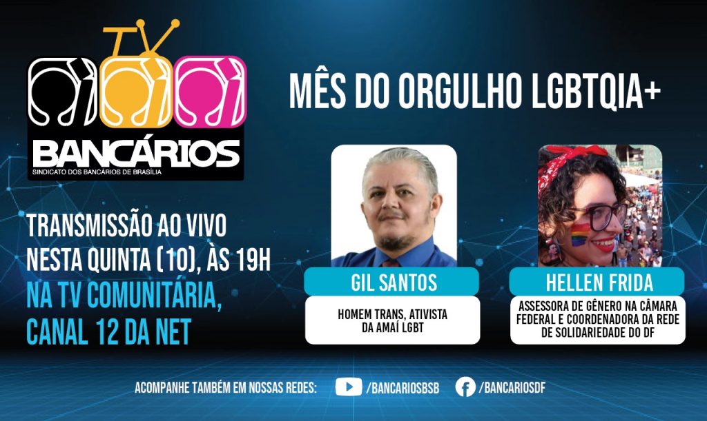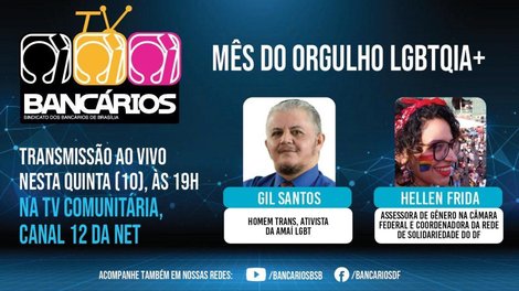 Junho é um mês importante para toda a comunidade LGBTQIA+ mundial. É neste mês que pessoas lésbicas, gays, bissexuais, transexuais e travestis, queers, intersexo, assexuais e das demais orientações sexuais e identidades de gênero celebram o orgulho de serem quem são. Nesta quinta-feira (10), a partir das 19h, o programa TV Bancários recebe Hellen Frida e Gil Santos para um bate-papo sobre a pauta das pessoas LGBTQIA+.