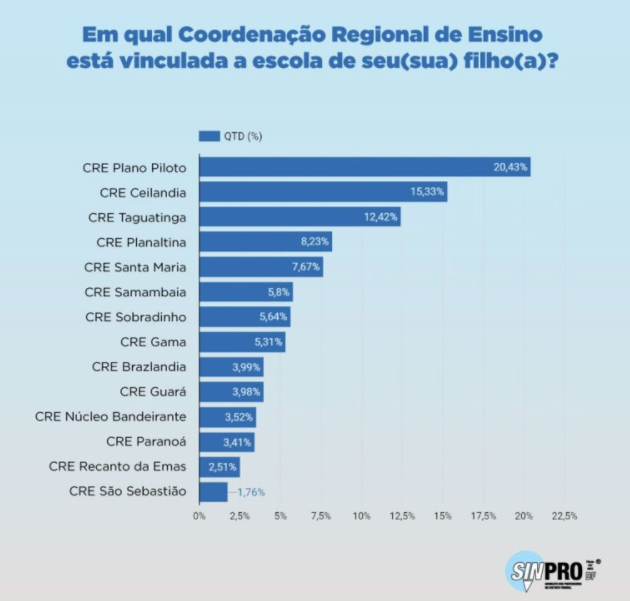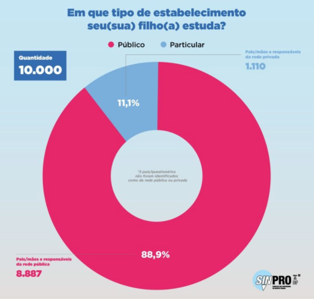 A pesquisa foi realizada entre os dias 23 e 31 de maio com pais, mães e responsáveis por estudantes da rede pública e privada de ensino do DF. O sindicato disponibilizou um questionário com 14 perguntas em seu site e dez mil questionários foram respondidos, sendo 1.110 da rede privada e, 8.887, da rede pública. Três questionários ficaram de fora porque não houve condições de identificar se eram de pais de estudantes da rede pública ou da particular.