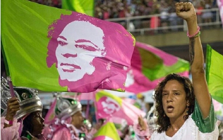 O enredo (confira a letra ao final do texto) cita vários personagens, inclusive recentes, como a vereadora Marielle Franco (Psol), assassinada há um ano. Mônica Benício, viúva de Marielle, desfilou pela escola. A vereadora também foi homenageada pela Vila Isabel, no Rio, e pela Vai-Vai, em São Paulo.