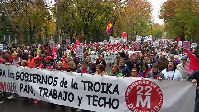 Sob o lema "pão, trabalho, teto e dignidade", cerca de 250 mil pessoas marcharam no último sábado sábado (29) em Madri e em outras cidades da Espanha denunciando a austeridade e a corrupção em um país ainda asfixiado pelo desemprego e pela pobreza após anos de crise.