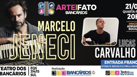 A 36ª edição do projeto ArteFato, promovido pelo Sindicato, recebe no dia 21, no Teatro dos Bancários, as melodias marcantes de Jeneci em noite com abertura de Lucas Carvalho. A entrada é franca.