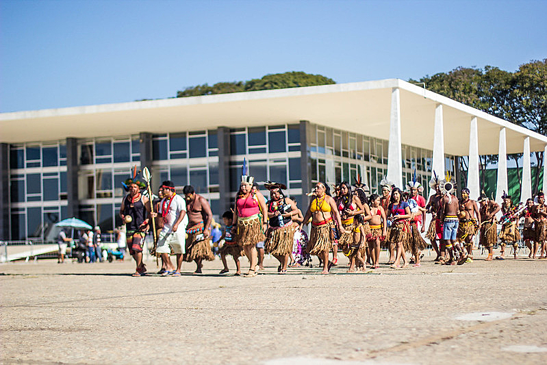 Uma comitiva da Articulação dos Povos Indígenas do Brasil (Apib) abriu negociações com a polícia do STF para que cerca de 50 lideranças do grupo acompanhem os votos dos magistrados do plenário. Eles também negociam com as forças de segurança do Distrito Federal para que o restante dos indígenas monitore a sessão do lado de fora, em uma espécie de vigília, assim como foi feito em outras datas para as quais estava agendado o retorno da avaliação do caso.