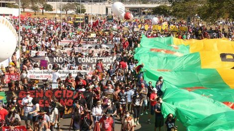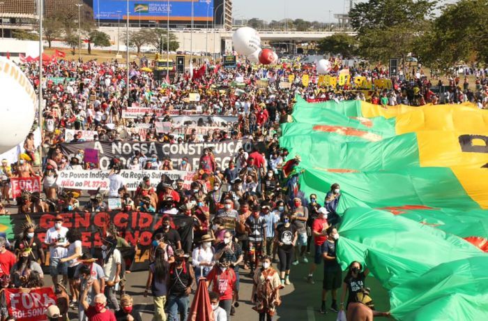 Em São Luís, indígenas participaram da manifestação – eles também reforçaram o ato de Brasília onde estão acampados exigindo direitos. O ‘fora’ se estendeu ao vice-presidente, general Hamilton Mourão e demais militares no governo.