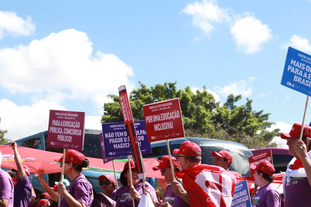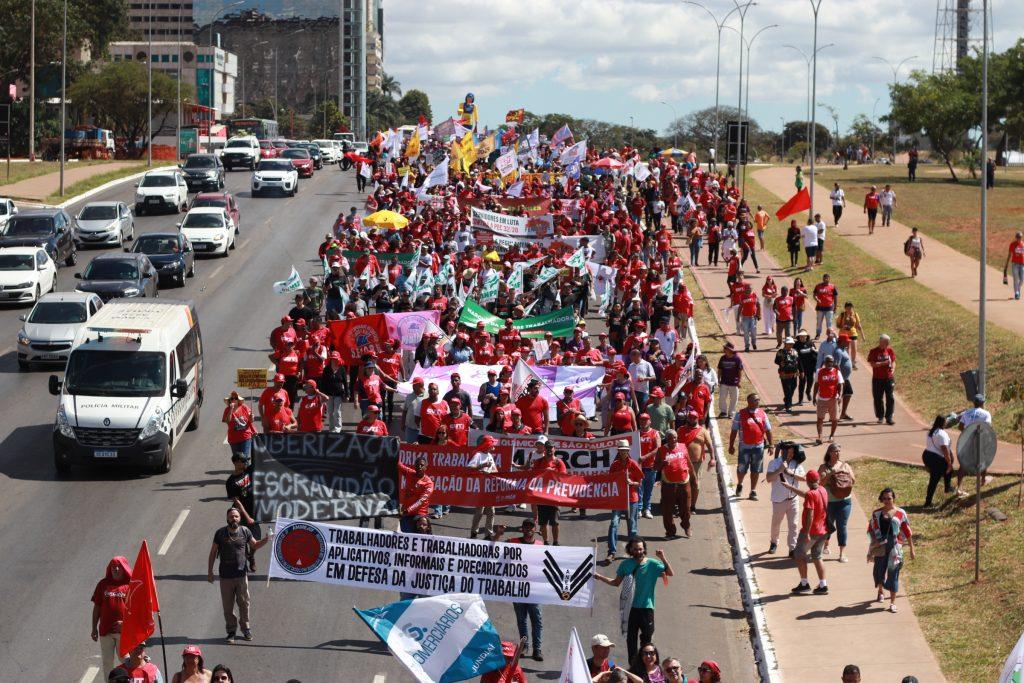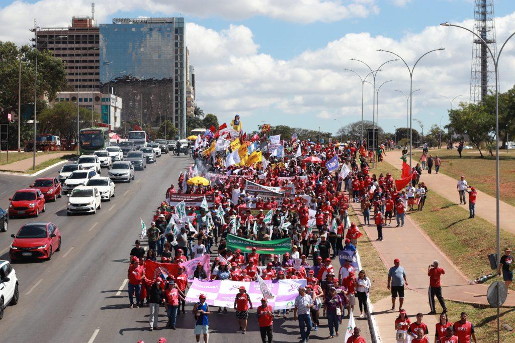 Milhares de trabalhadores e trabalhadoras, oriundos de todos os cantos do país, se reuniram nesta quarta-feira (22), em Brasília, para uma marcha e plenária, em defesa da pauta da classe trabalhadora, que tem entre suas reivindicações a reconstrução do estado do Rio Grande do Sul, a revogação do Ensino Médio, o trabalho decente, menos juros e a correção da tabela do imposto de renda, entre outras. Veja abaixo quais são.