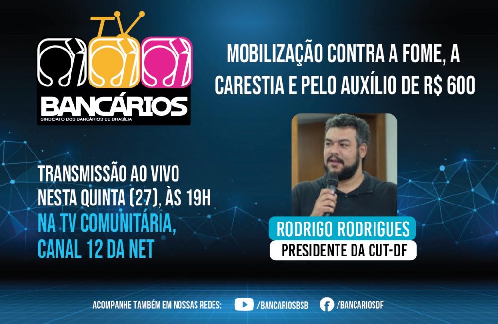 O TV Bancários desta quinta-feira (27) analisa a mobilização deflagra nesta semana pelas centrais sindicais e movimentos sociais contra a fome, a carestia e pelo auxílio de R$ 600 com ato público em frente ao Congresso Nacional. O convidado do programa é o presidente da CUT Brasília, Rodrigo Rodrigues.