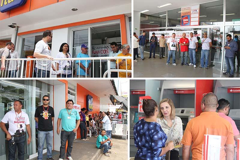 A atividade, que visa unir esforços para arrancar uma proposta digna dos bancos, faz parte da Campanha Nacional de 2015, que tem como mote “Você no aperto e os bancos não param de ganhar. Sugadores”.