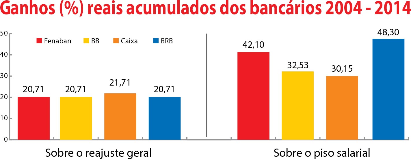 Foram sete dias de greve e uma mobilização de vários meses na construção democrática da pauta de reivindicações e que culminou com a conquista de novos avanços para os bancários neste ano. A categoria garantiu aumento real no piso pelo 11º ano consecutivo, de 2004 até 2014. O ganho real acumulado no piso dos últimos dez anos é de 42,10%, de acordo com levantamento do Departamento Intersindical de Estatística e Estudos Socioeconômicos (Dieese).