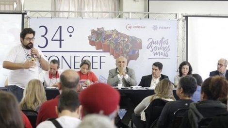 Foi aberto nesta quinta-feira (7), em São Paulo, o 34º Congresso Nacional dos Empregados da Caixa Econômica Federal (Conecef), que reúne cerca de 400 trabalhadores do banco de todo o país, entre delegados, observadores e convidados. Logo no início do evento, lideranças sindicais e do movimento associativo ressaltaram a importância de intensificar a mobilização em defesa da Caixa 100% pública e contra a retirada de direitos. Os dirigentes lembraram que o momento é de resistência aos ataques contra a empresa e seus trabalhadores.