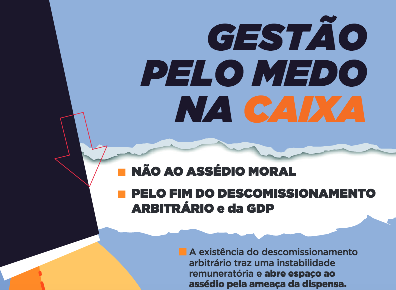 Conforme esclarece a cartilha, a política de GDP da Caixa vem inserindo a lógica do mercado: os empregados são cobrados por resultados e rentabilidade. A ameaça é um método de manter a produção no banco. Em 2018, a direção da empresa insere o GDP aos motivos de descomissionamento no RH 184, institucionalizando a ameaça velada que já existia até então.