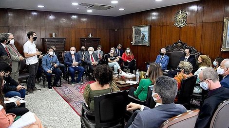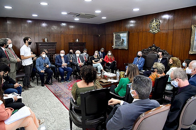 Representantes de centrais sindicais, entidades estudantis e movimentos populares se reuniram com o presidente do Senado, Rodrigo Pacheco (DEM-MG), para pedir a não votação da medida, que pode entrar na pauta da Casa nesta quinta (25).