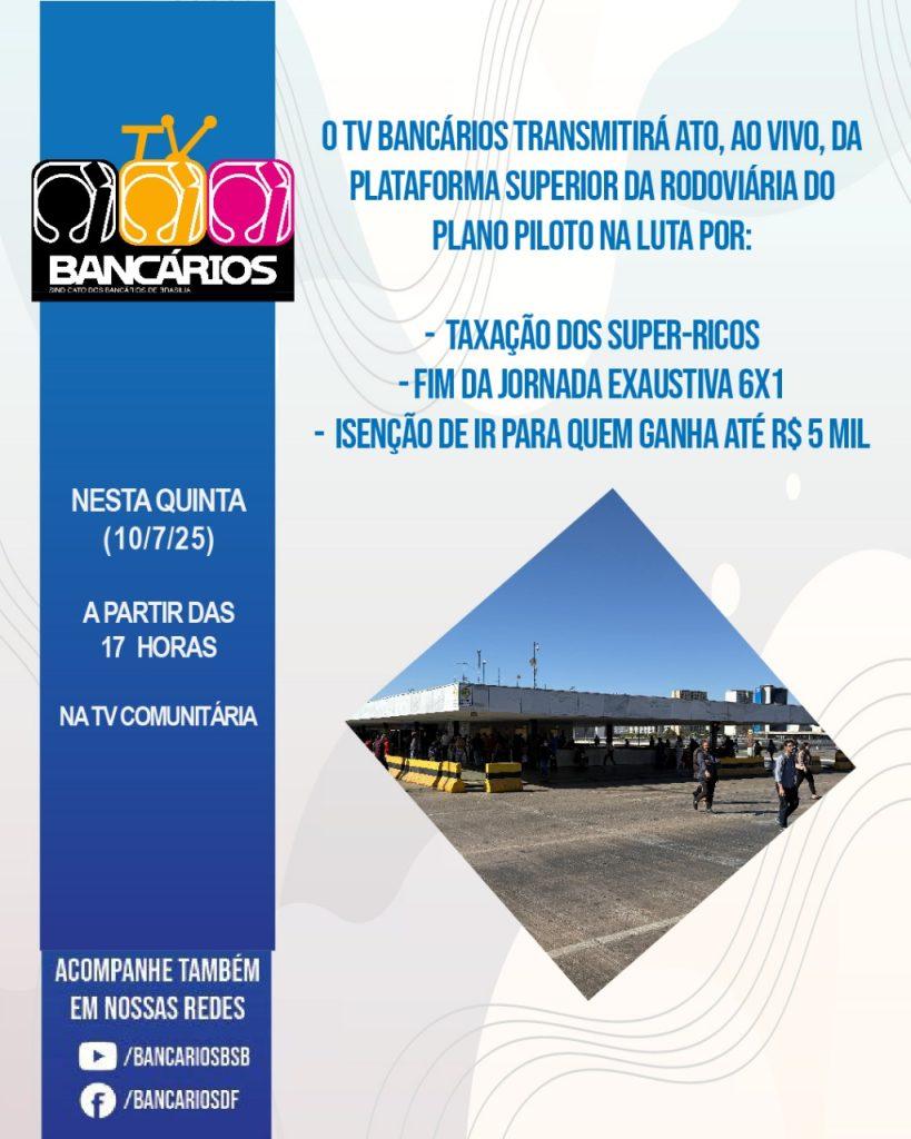 Em Brasília, o ato ocorrerá a partir das 17h, na plataforma superior da Rodoviária do Plano Piloto, e contará com transmissão da TV Bancários na TV Comunitária (ver card abaixo). A mobilização denuncia parlamentares que atuam contra os interesses da classe trabalhadora e em defesa dos mais ricos, agindo de forma agressiva para retirar direitos, destruir o Estado brasileiro e ampliar seus privilégios.