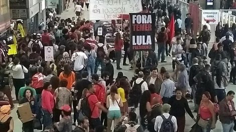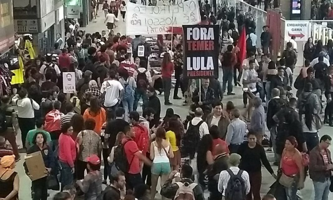 Após o ato na Rodoviária, os manifestantes desceram e se juntaram à Vigília Lula Livre que acontece todo final de tarde nas quartas-feiras, em frente ao Supremo Tribunal Federal.